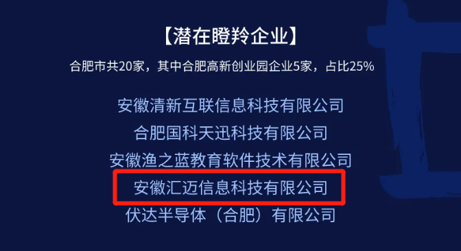 汇迈科技作为高新区瞪羚企业,此次入选合肥市潜在瞪羚企业,无疑是对公司创新能力、产品服务、业务模式和发展速度的充分肯定。