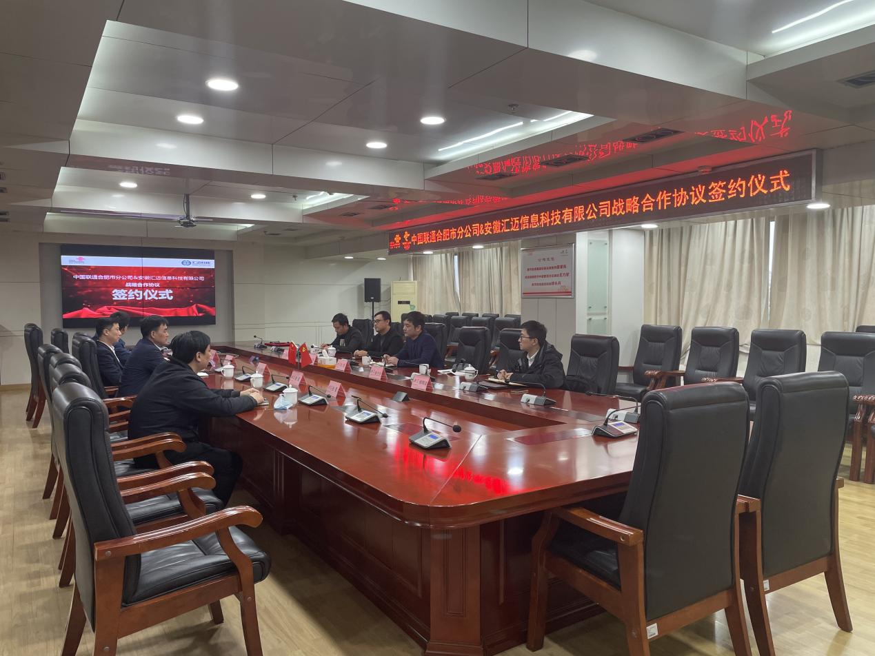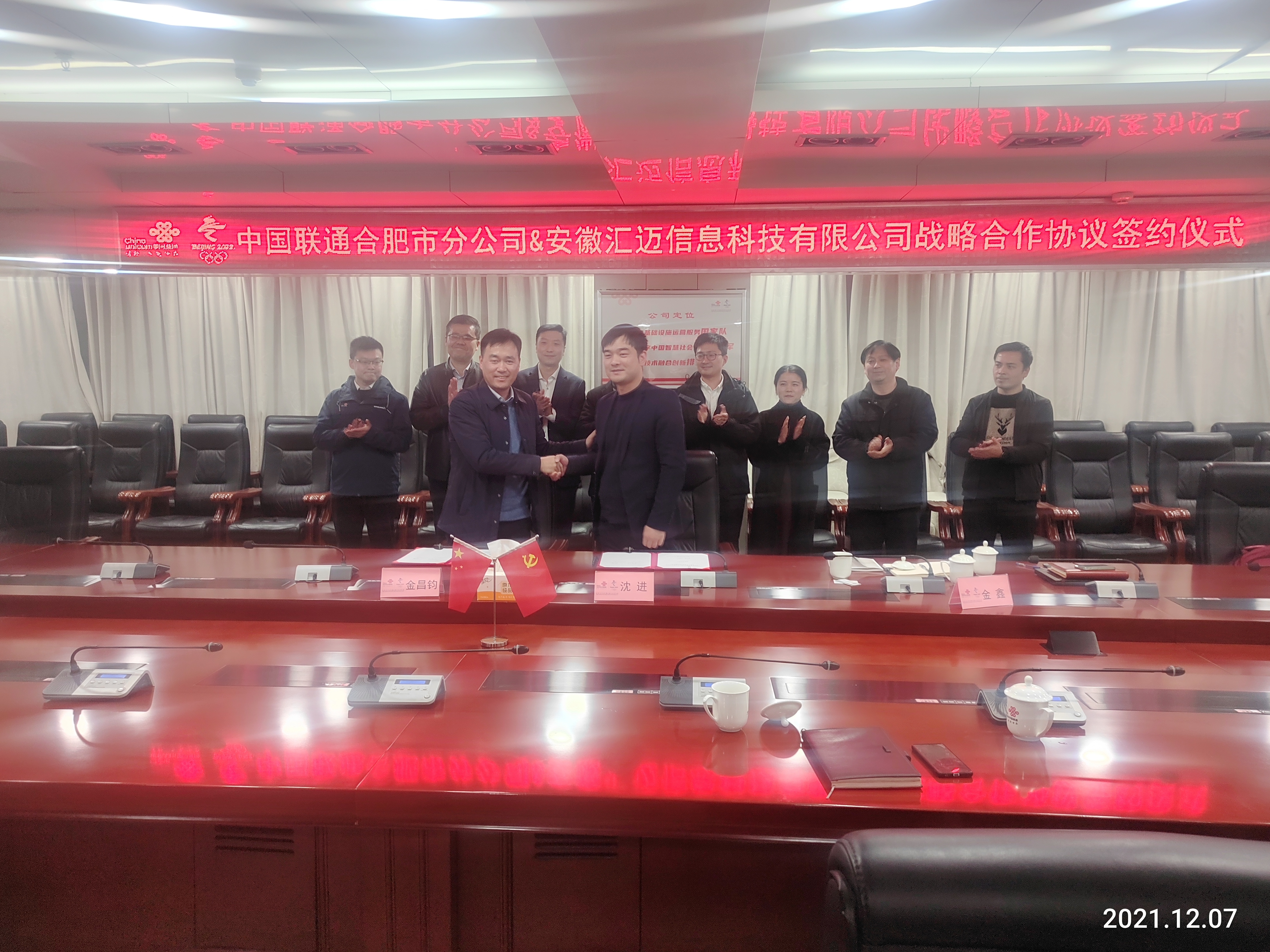 12月7日,安徽汇迈信息科技有限公司与中国联合网络通信有限公司合肥市分公司签订了战略合作协议。